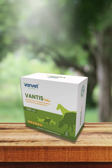 Vantis Bolus is a scientifically designed Ayurvedic proprietary formulation that combines traditional wisdom with modern veterinary needs.